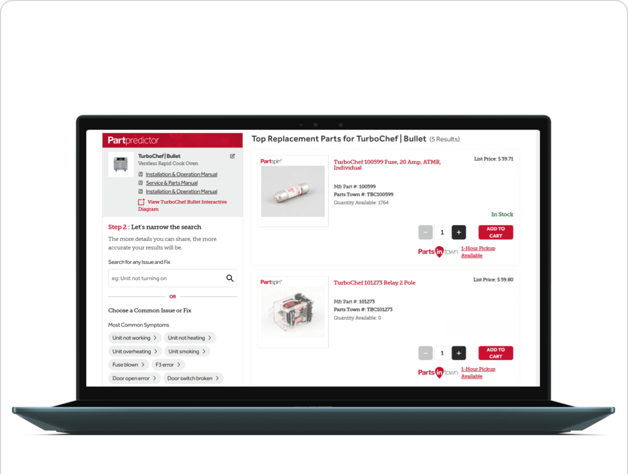 PartPredictor is Parts Town’s industry-first digital tool built to take the guesswork out of repairs. Powered by AI and real-world work order data from technicians in the field, PartPredictor provides the most frequently used parts for specific equipment issues—helping technicians find and identify the right parts faster than ever.
